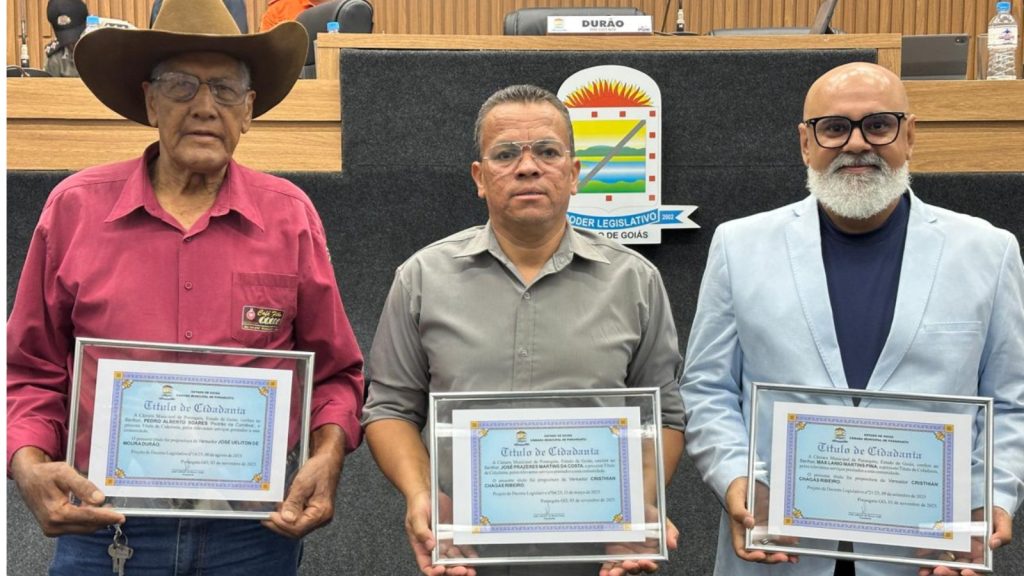 Foram agraciados: Pedro Alberto Soares, conhecido como “Pedrão da Comitiva”, indicado pelo vereador José Ueliton de Moura Durão através do Projeto de Decreto Legislativo nº 16/25; o professor universitário Max Lanio Martins Pina; e o maestro José Prazeres Martins da Costa, ambos propostos pelo vereador Cristhian Chagas por meio dos Projetos de Decreto Legislativo nº 21/25 e nº 04/25, respectivamente.