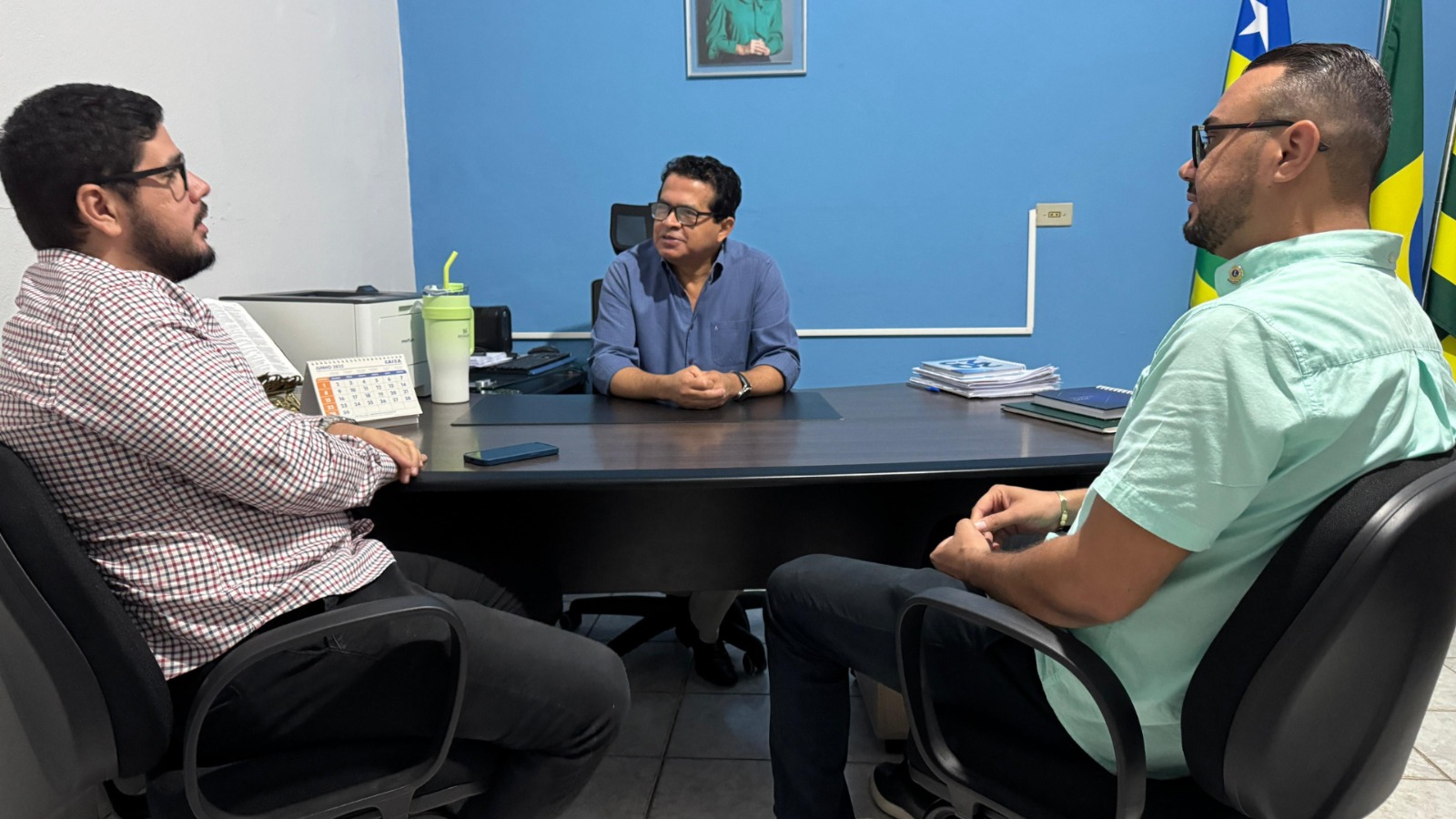 Nesta manhã de quinta-feira, 12/06, o Secretário Municipal de Educação, Deulene Vieira, recebeu o vereador Rafael Miguel (REPUBLICANOS), presidente da Frente Parlamentar de Proteção dos Direitos das Pessoas com Transtorno do Espectro Autista (TEA) e Doenças Raras, que esteve juntamente com o Vereador Lucas Freitas (PSD), que é secretário da Frente Parlamentar, na oportunidade conversaram a respeito de políticas públicas voltadas à inclusão de crianças com autismo e condições raras na rede municipal de ensino.